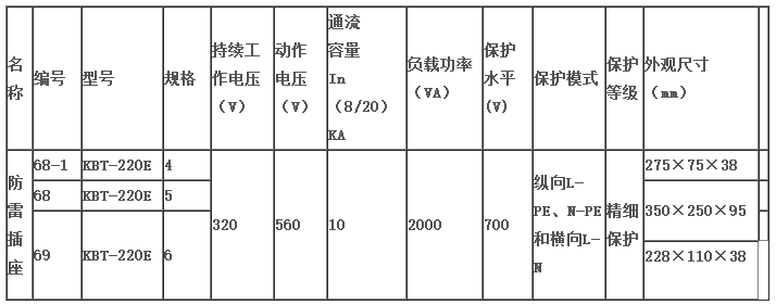 KBT-220E多媒體電源防雷插座適用于計(jì)算機(jī)、銅須設(shè)備、傳真機(jī)、高檔音響、影音設(shè)備、精密儀器、儀表等各種辦公及家用電子、電氣設(shè)備的防雷放過(guò)壓末級(jí)保護(hù)。具有溫控和過(guò)流等失效保護(hù)電路,不影響線路的正常工作。新型多用途標(biāo)準(zhǔn)插孔,寬松合理的空座間隙,能同時(shí)滿足多臺(tái)不同電器設(shè)備的防雷需求。