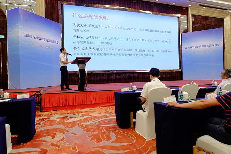 為了光伏扶貧工作切實推進(jìn),為讓更多的人了解光伏發(fā)電,讓更多的參與到光伏發(fā)電項目,使分布式光伏發(fā)電項目健康發(fā)展,我省急需探討出科學(xué)、高效的光伏發(fā)電扶貧模式。本次會議以“探討湖南光伏發(fā)電新模式,推動湖南省光伏發(fā)電發(fā)展”為主題展開,主要目的是解讀國家光伏政策及光伏發(fā)展現(xiàn)狀、趨勢;了解湖南省光伏電站實施現(xiàn)狀;光伏電站建設(shè)現(xiàn)狀、所面臨的問題及應(yīng)對辦法;探討移動互聯(lián)網(wǎng)下的“合伙人計劃”。