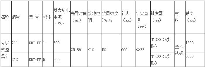 1.KBT-UB先導(dǎo)避雷針是將雷電提前先導(dǎo)并泄入大地,使被保護(hù)物免遭直接雷擊的防雷裝置;